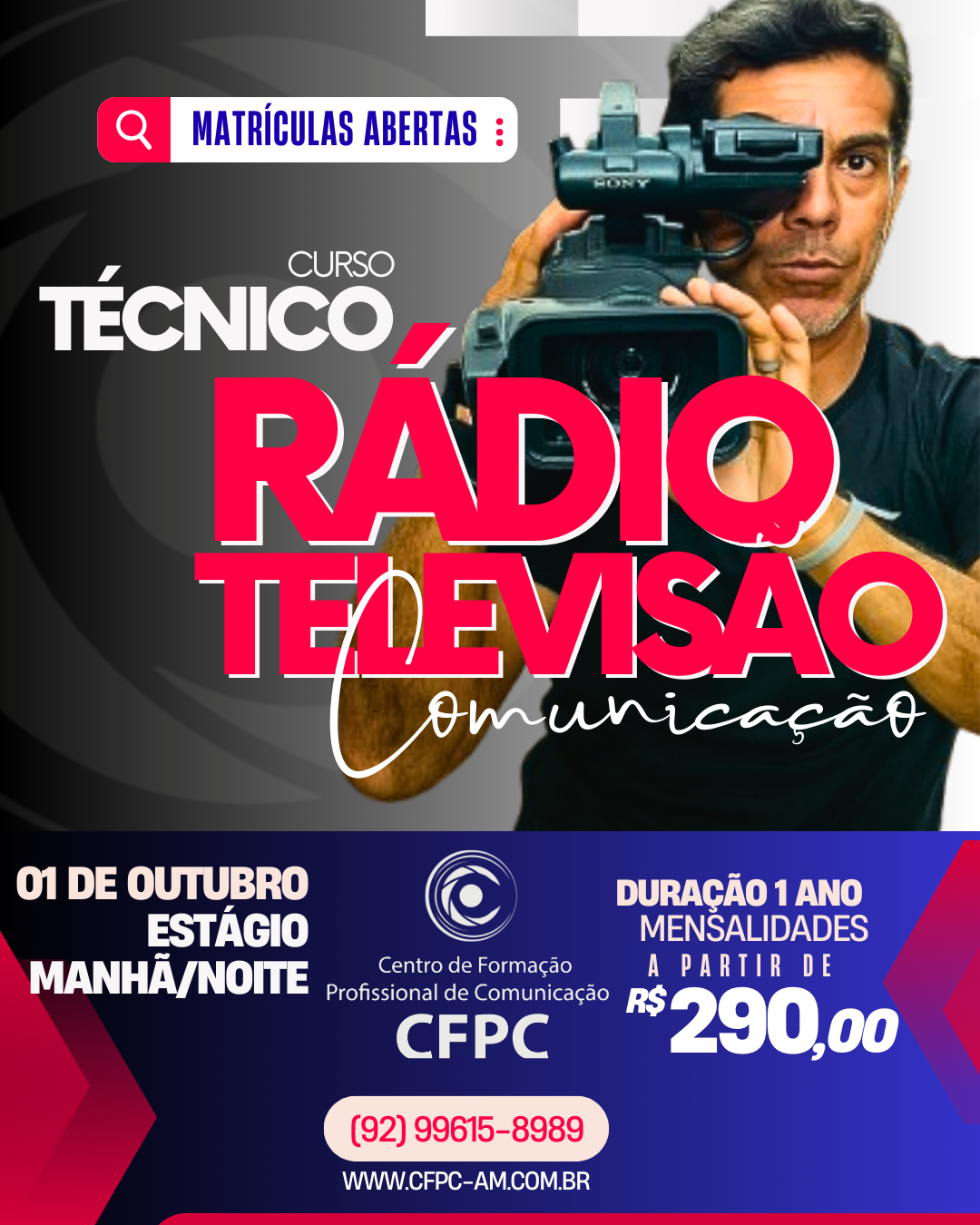Estão abertas as Matrículas para os Curso Técnico em Rádio e Televisão.